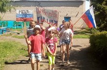 Сегодня состоялся парад, посвящённый Дню России. Вожатые лагеря провели с учащимися викторину "Государственная символика России" и флешмоб.
