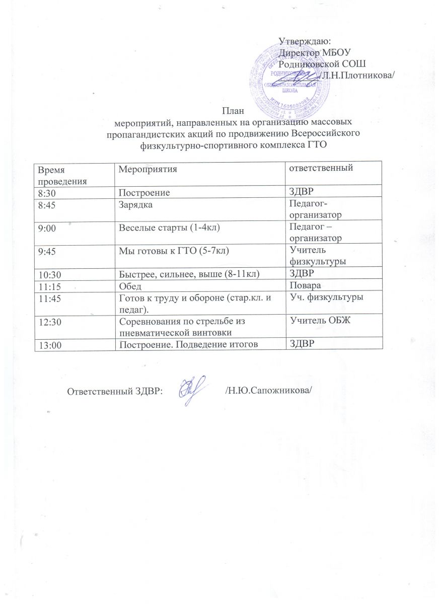 «Об организации мероприятий по сдаче норм ГТО в школе»