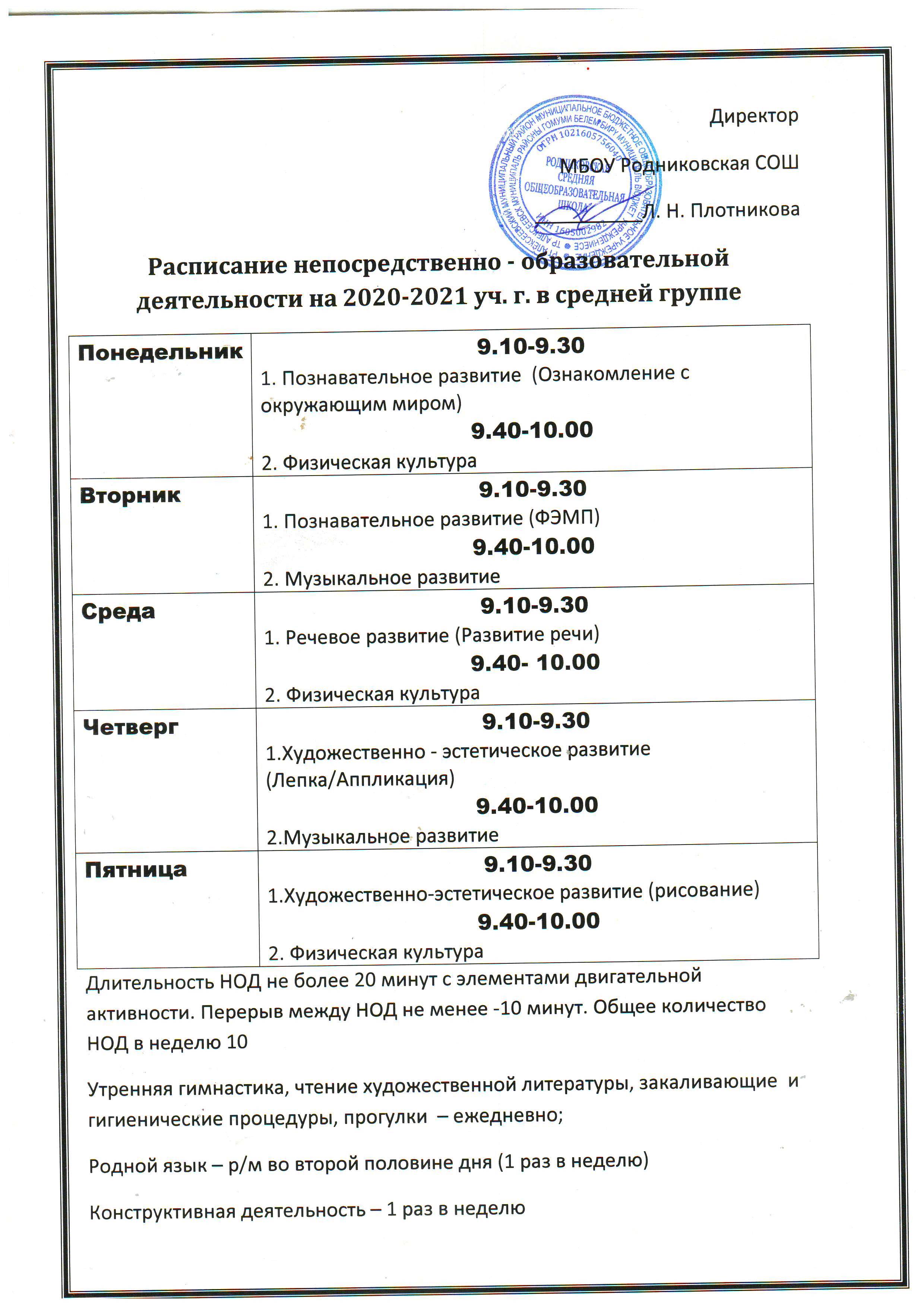 Сетка занятий на 2020-2021 год