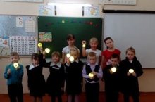 Членами школьной детской организации "Союз мальчиков и девочек" для первоклассников была организована агитбригада "Яркие значки", в ходе своего выступления ребята рассказали младшим школьникам о светоотражающих значках, о их необходимости в целях безопасности, а в конце выступления подарили им яркие значки - фликеры.