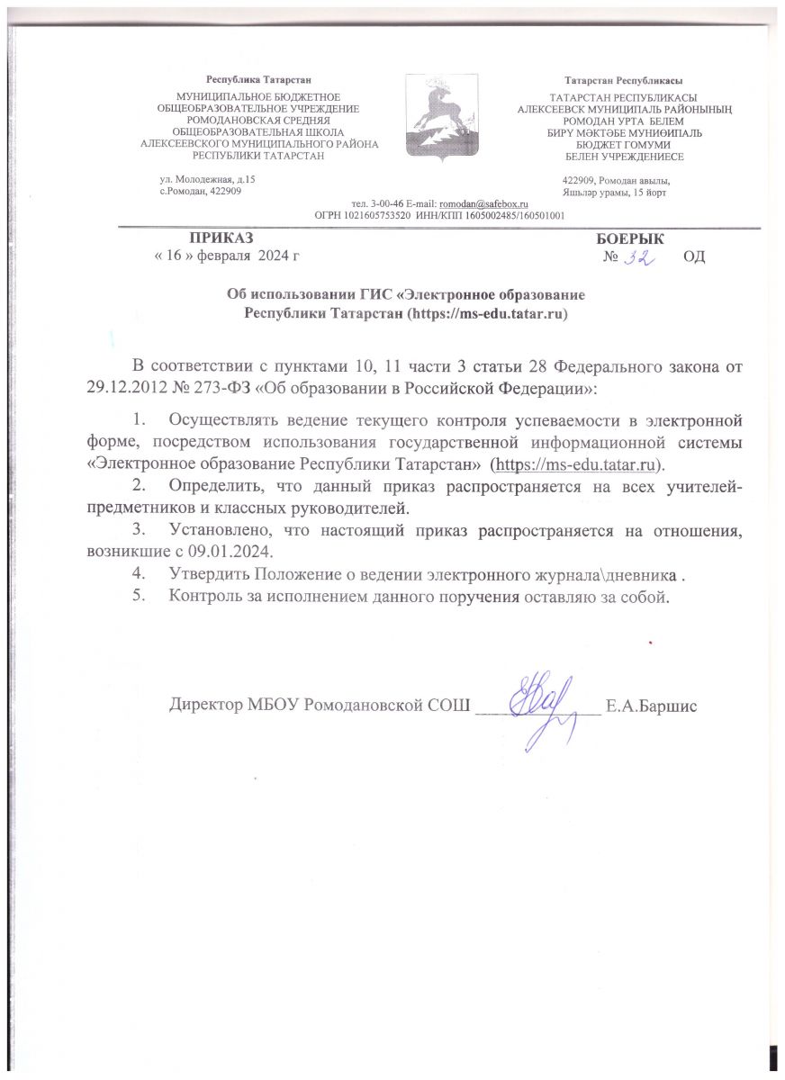 Муниципальное бюджетное общеобразовательное учреждение Ромодановская средняя общеобразовательная школа Алексеевского муниципального района Республики Татарстан/ Муниципаль бюджет гомуми белем бирү учреждениесе Татарстан Республикасы Алексеевск муниципаль районының Ромодан урта гомуми белем бирү мәктәбе