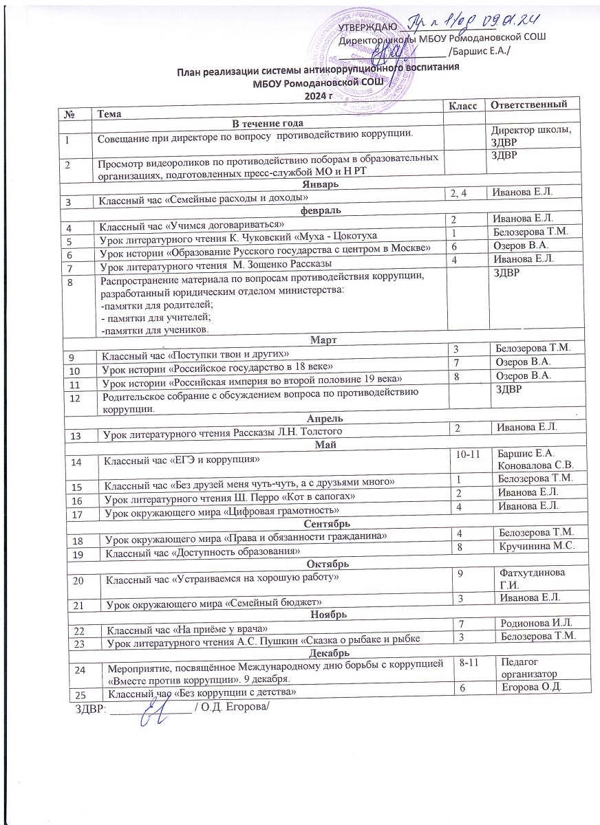 План работы по антикоррупции\ Коррупциягә каршы эш планы