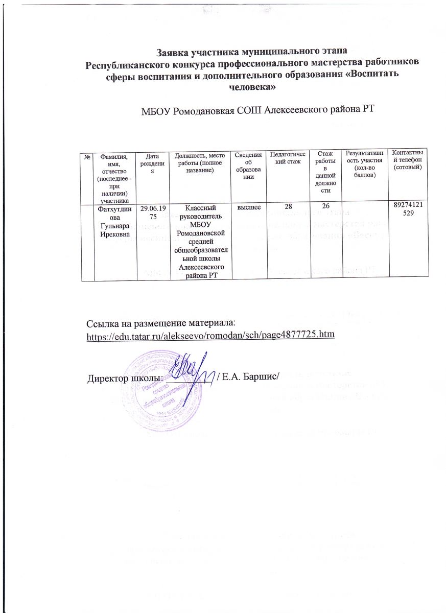 Муниципальное бюджетное общеобразовательное учреждение Ромодановская средняя общеобразовательная школа Алексеевского муниципального района Республики Татарстан/ Муниципаль бюджет гомуми белем бирү учреждениесе Татарстан Республикасы Алексеевск муниципаль районының Ромодан урта гомуми белем бирү мәктәбе