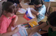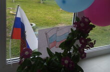 Сегодня в лагере прошла акция "Флаг России". Учащиеся размещали на окнах Российский флаг.