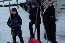 В рамках акции "Твори добро" юнармейцы окозали помощь пожилым жителям села в очистке снега придомовой территории.