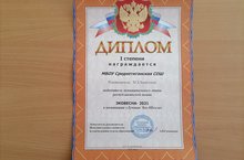 Безнең мәктәп республика ЭКОВЕСНА - 2021 акциясенең муниципаль этабында "Иң яхшы Эко-мәктәп" номинациясендә җиңүче булды һәм 1 дәрәҗә Диплом белән бүләкләнде.