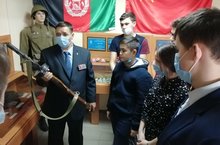Патриотик тәрбия айлыгы кысаларында башлангыч сыйныф укучылары мәктәп музеенда булдылар. Алар Бөек Ватан сугышы чорының шаһитлары булган материаллар, документлар, фоторәсемнәр һәм башка әйберләр белән таныштылар.