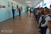 На линейке присутствовали ученики всех классов. Право поднять флаг было предоставлено ученикам 11 класса. Директор школы М.З.Хаметшин поздравил всех с началом учебного года, пожелал всем успехов в новом учебном году.Бүген Россия Федерациясе һәм Татарстан Республикасы Дәүләт флагын күтәрү тантанасы узды. Линейкада барлык сыйныф укучылары да катнашты. Флагны күтәрү хокукы 11 сыйныф укучыларына бирелде. Мәктәп директоры М.З.Хаметшин барысын да уку елы башлану белән котлады, яңа уку елында барысына да уңышлар теләде.