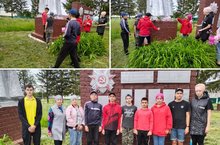 Далее воспитанники лагеря отправились к памятнику погибшим воинам во время Великой Отечественной войны, возложили цветы и почтили память павших в ВОВ минутой молчания.