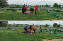 Бүген хезмәт һәм ял лагеренда балалар мәйданчыгы территориясен җыештыру буенча хезмәт десанты узды. Барысы да бердәм булып җыештыруга кереште. Рәхәтләнеп эшләдек! Мәйданчык территориясе һәрвакыт чиста һәм матур булсын иде.