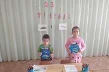 Ватанны саклаучылар көне алдыннан мәктәпкәчә төркем тәрбияләнүчеләре әтиләр һәм бабайлар өчен котлау открыткалары әзерләделәр.