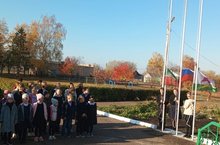 Сегодня , в прекрасную осеннюю погоду , в нашей школе прошла Торжественная церемония поднятия государственных флагов и исполнения гимнов РФ и РТ. Почетную миссию выполнили ученики 8 класса , неоднократные победители районных конкурсов :Фунтикова Дарья , Султанов Кирил, Мезенцева Ксюша.