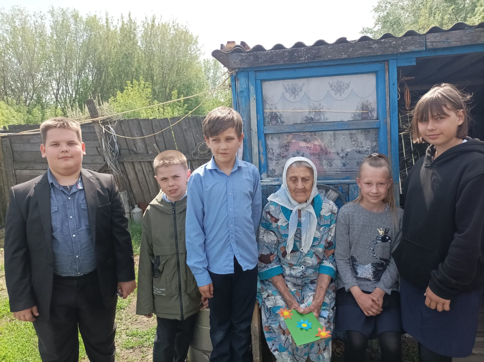 Родные наши Ветераны, с чувством глубокой благодарности мы поздравляем Вас сегодня с Днем Великой Победы 9 Мая! Наша душевная признательность и низкий поклон Вам за мирное небо, счастливые улыбки детей, за нашу Родину. Ваш героизм, решительность и непоколебимую самоотверженность мы будем помнить вечно. Здоровья и продолжительных лет жизни Вам. Мы очень-очень гордимся Вами! Каждый класс нашей школы посетил своего подопечного. на фото Гунина Анна Тимофеевна ей 100 лет , она участник Великой Отечественной войны , участник Сталинградской битвы .