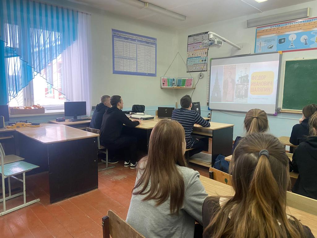 В Сахаровской школе были проведены классные часы в рамках внеурочной деятельности «Разговор о важном», приуроченные к 150-летию со дня рождения Федора Ивановича Шаляпина. Ф.И. Шаляпин был выдающейся личностью. Он смог воплотить в себе оперного и камерного певца, а также получил репутацию артиста, который соединил в своем творчестве «прирожденную музыкальность, яркие вокальные данные, необыкновенное актерское мастерство». Обучающиеся познакомились с основными фактами жизни Ф.И. Шапяпина, сформировали позитивное отношение к русскому музыкальному наследию, воспитали эстетический вкус к классической музыкею