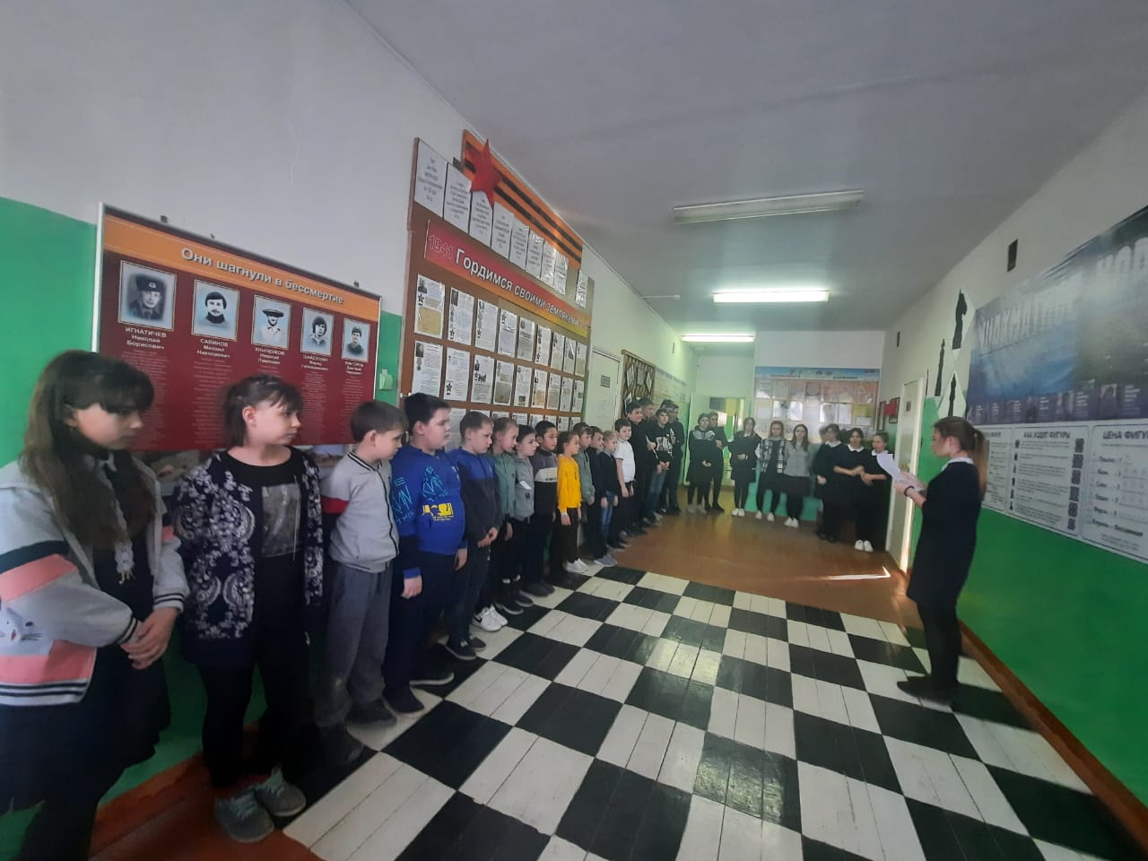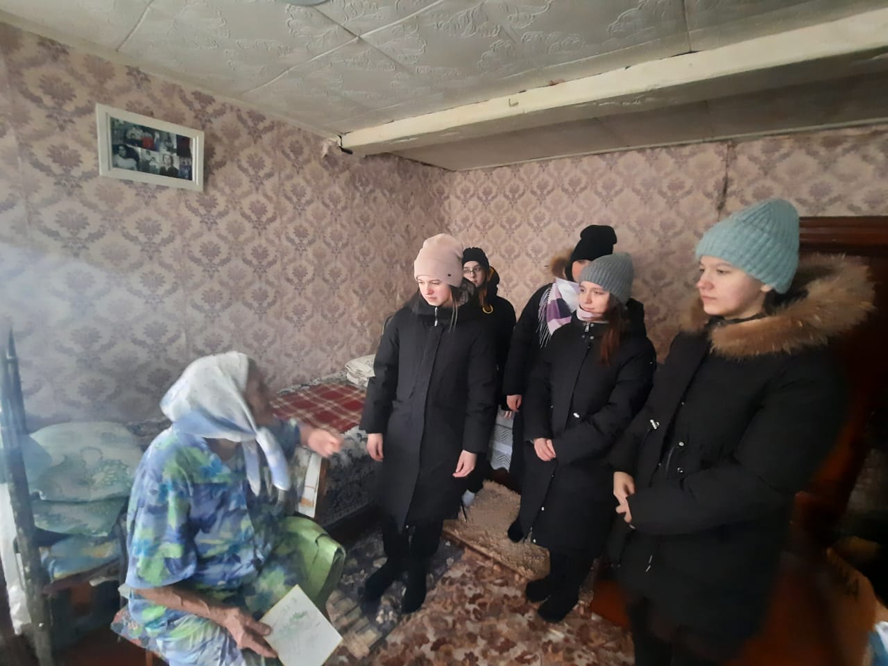 В рамках месячника военно - патриотического воспитания отряд юнармейцев посетил на дому труженицу тыла во время ВОВ ЛисинуА.Е. пообщались и предложили свою помощь , оставив номер телефона.