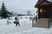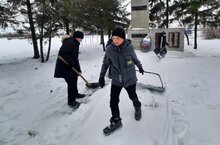 Участники отряда Юнармии Сахаровской школы помогли убрать территорию храма от снега.
