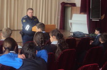 10 сентября в актовом зале прошла встреча с инспектором ГИБДД Хусаиновым Р.Ж. Инспектор рассказал учащимся 7 классов о правилах дорожного движения и показал видеосюжеты об удерживающих устройствах в автомобиле.