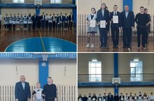 Сегодня на линейке, торжественно открывающей новую учебную неделю, чествовали победителей и призеров школьного этапа Всероссийской олимпиады школьников и участников интеллектуальной олимпиады "Что?Где?Когда?", команды девочек и мальчиков занявшие второе место на финале зонального этапа ШБЛ КЭС-БАСКЕТ. Директор школы, Владимир Анатольевич Иванов, выступил со словами благодарности и добрыми пожеланиями дальнейших побед .