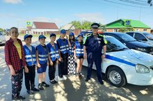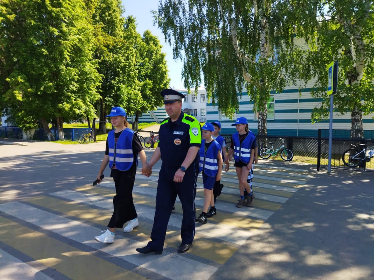 В рамках празднования Дня России. Старший ИДПС ОГИБДД отдела МВД России по Алексеевскому району капитан полиции Хасанов Ильшат провел беседу с ЮИДовцами и показал правила безопасности дорожного движения через пешеходный переход.