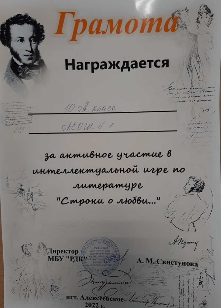 Муниципальное бюджетное общеобразовательное учреждение "Алексеевская средняя общеобразовательная школа №1 имени Александры Андреевны Малафеевой" Алексеевского муниципального района Республики Татарстан/Татарстан Республикасы Алексеевск муниципаль районының "Александра Андреевна Малафеева исемендәге 1 нче Алексеевск урта гомуми белем бирү мәктәбе" муниципаль бюджет гомуми белем бирү учреждениесе.