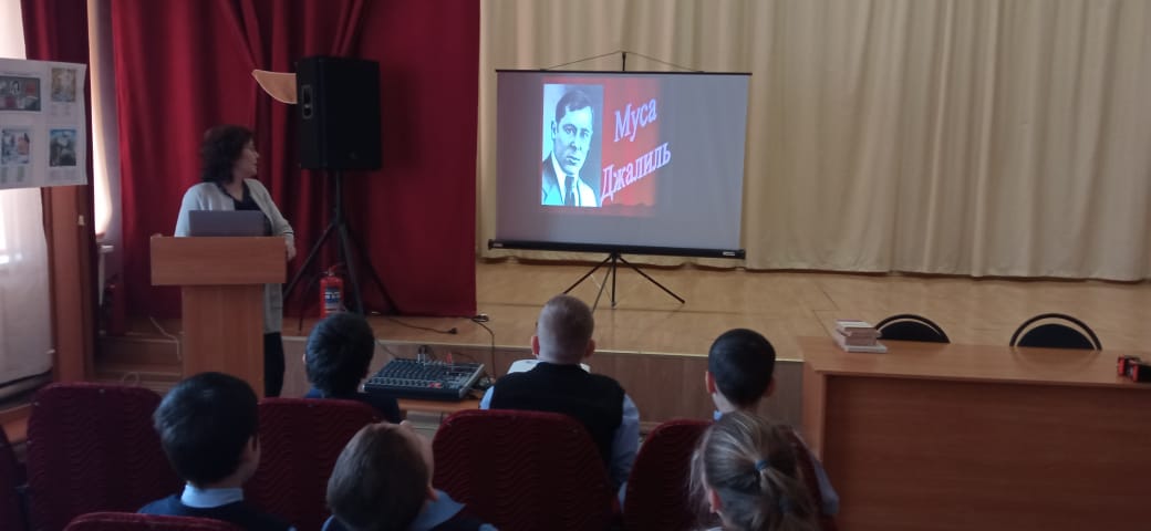 В честь Дня рождения Великого татарского поэта Мусы Джалиля в нашей школе была изготовлена газета о его нелёгком жизненном пути. Детьми были подготовлены и продемонстрированы презентации о биографии Мусы Джалиля, были прочтены его стихотворения, а так же представлены рисунки по их мотивам.