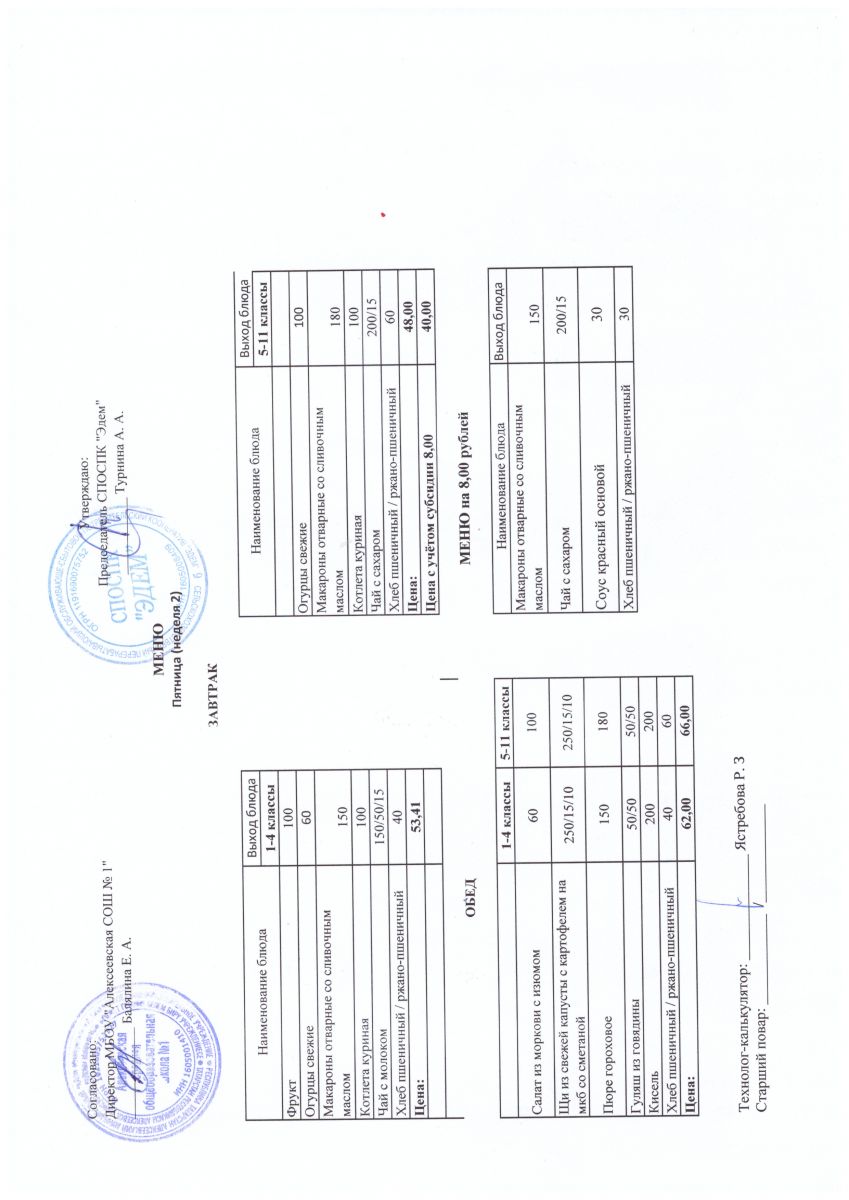 Примерное двухнедельное меню для учащихся 5-11 классов на первое полугодие 2021-2022 учебный год