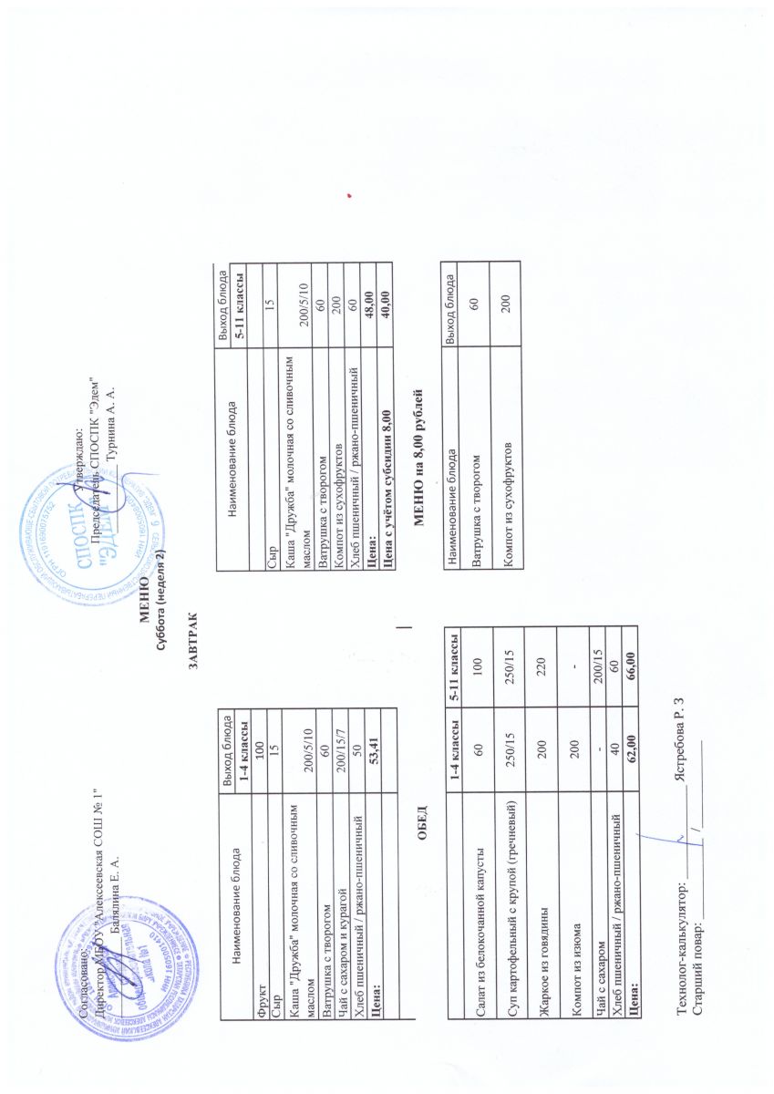 Примерное двухнедельное меню для учащихся 5-11 классов на второе полугодие 2021-2022 учебный год