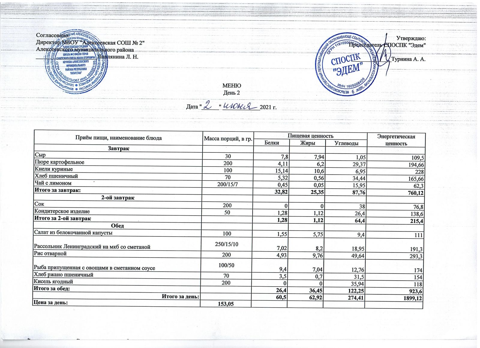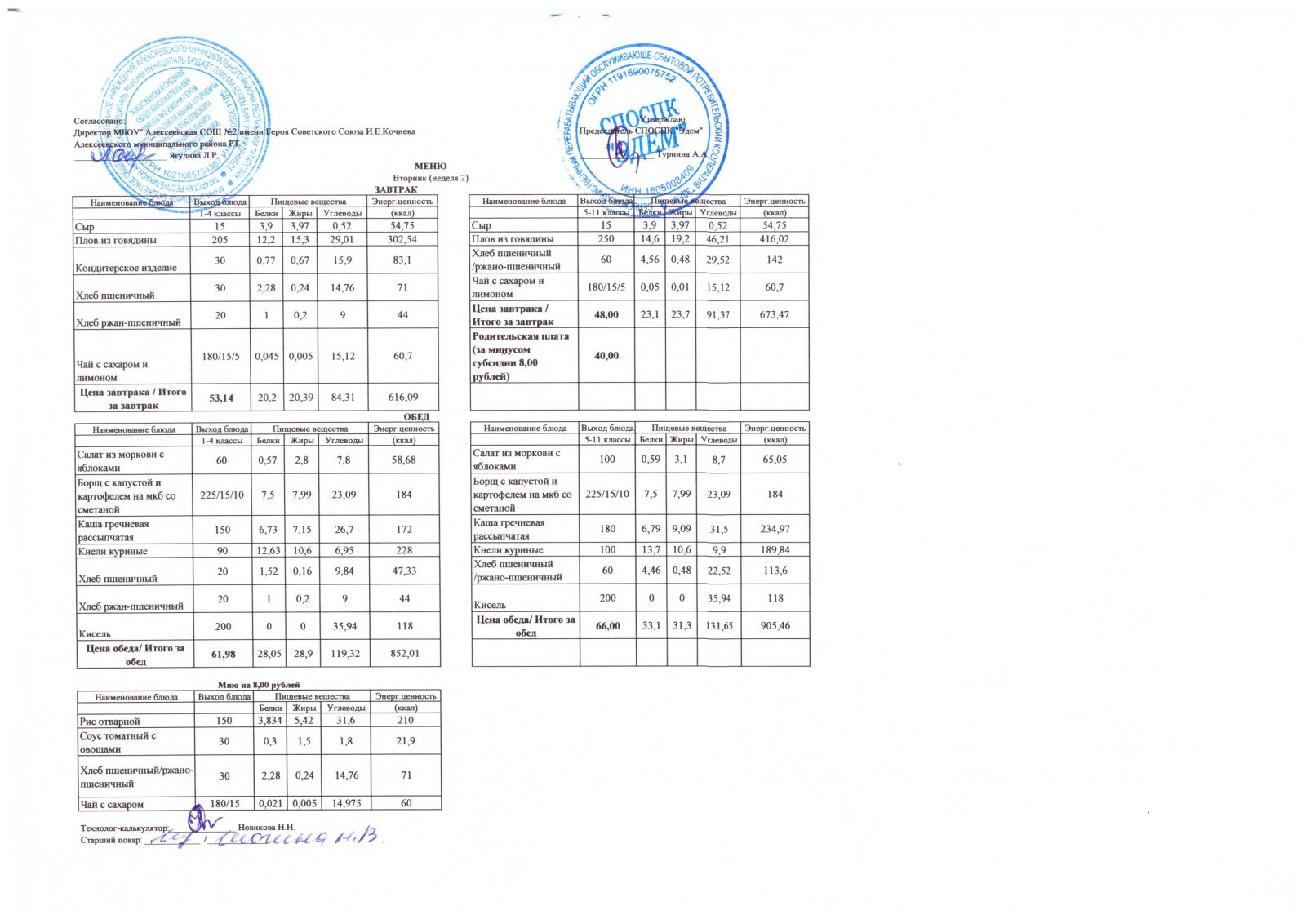 Меню МБОУ "Алексеевская СОШ №2" на 2 неделю
