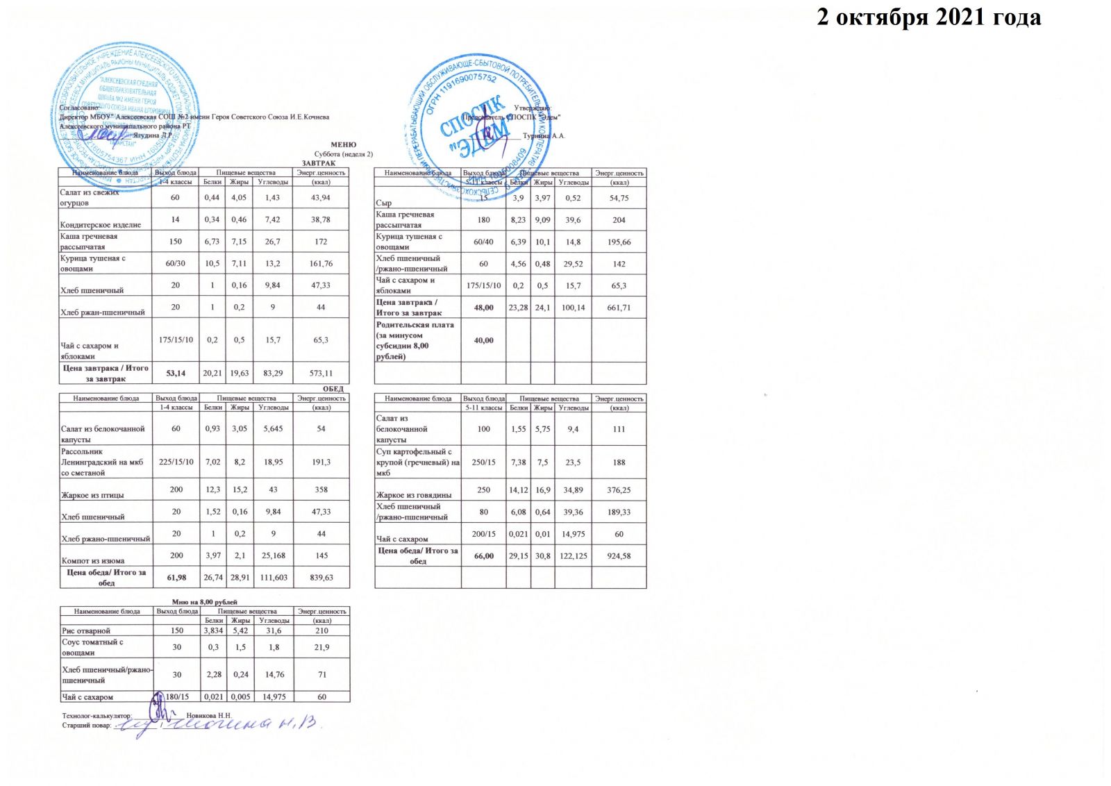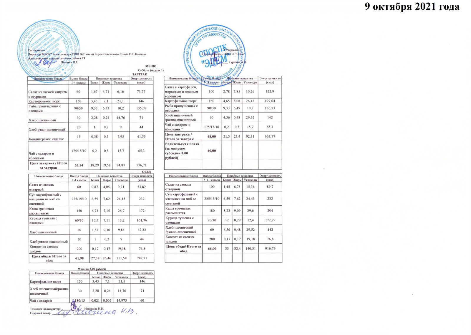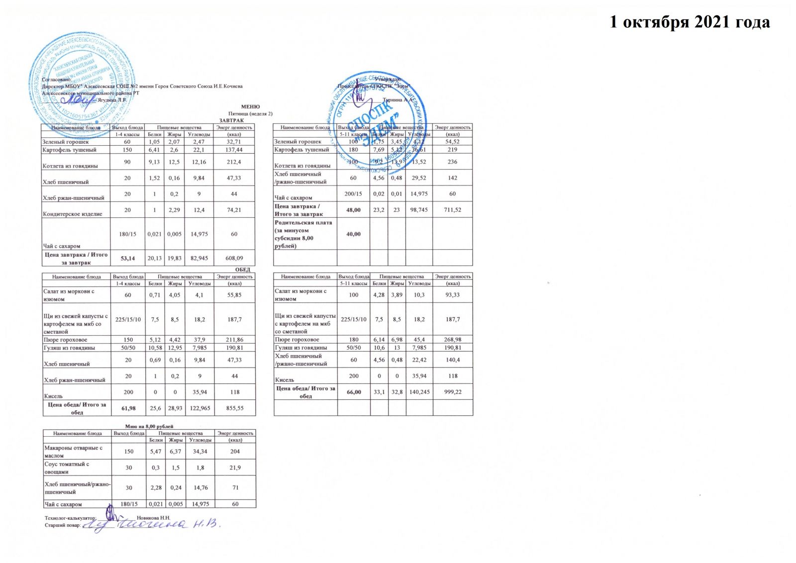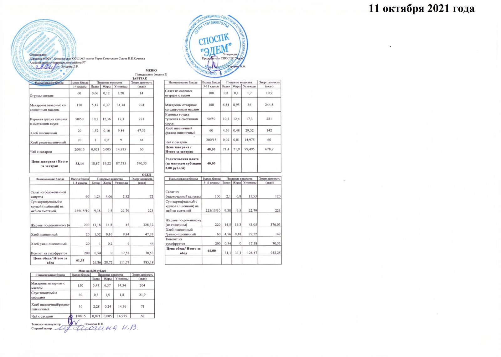 Меню 15.10.2021 Меню 16.10.2021 Меню 18.10.2021