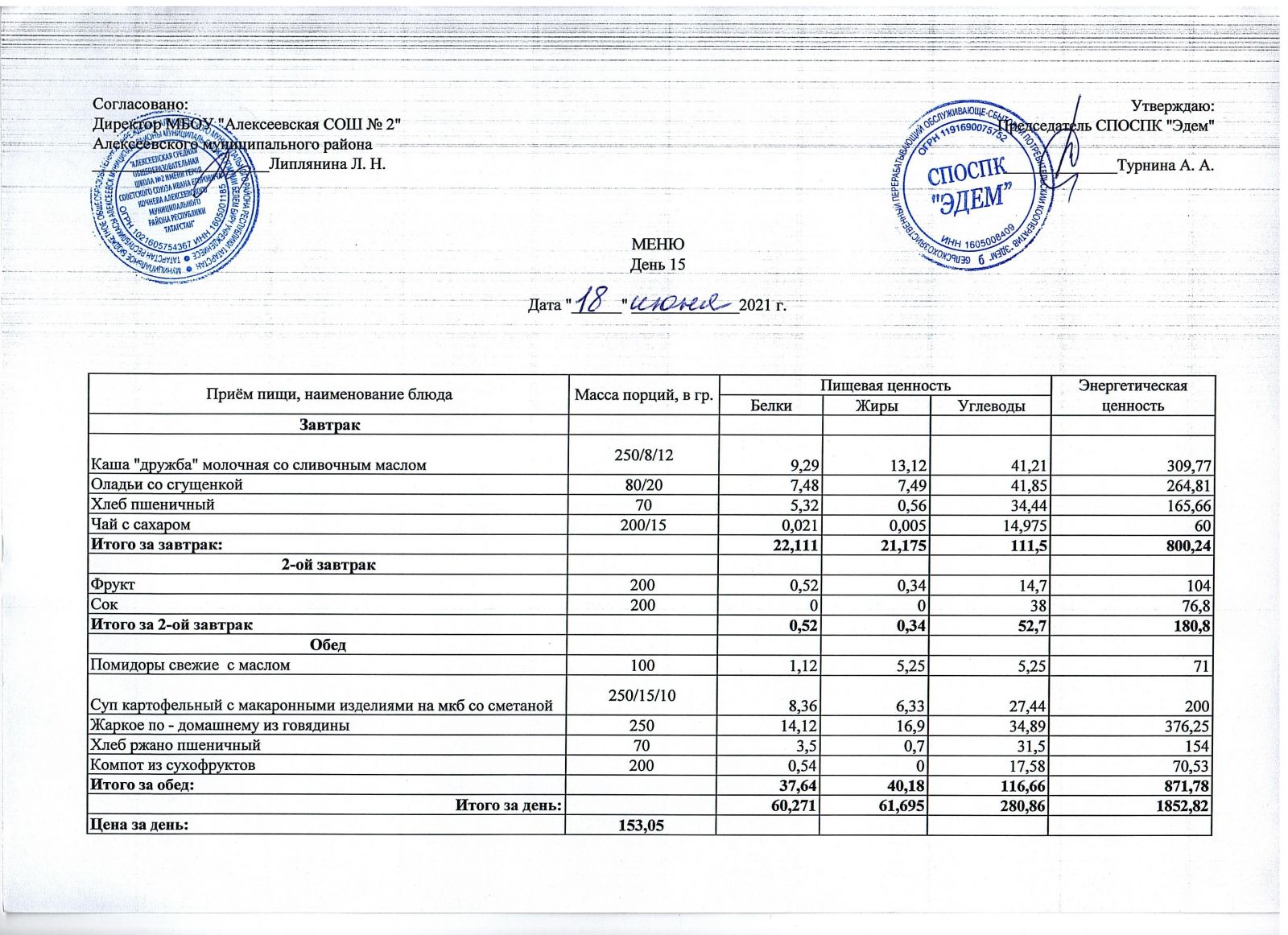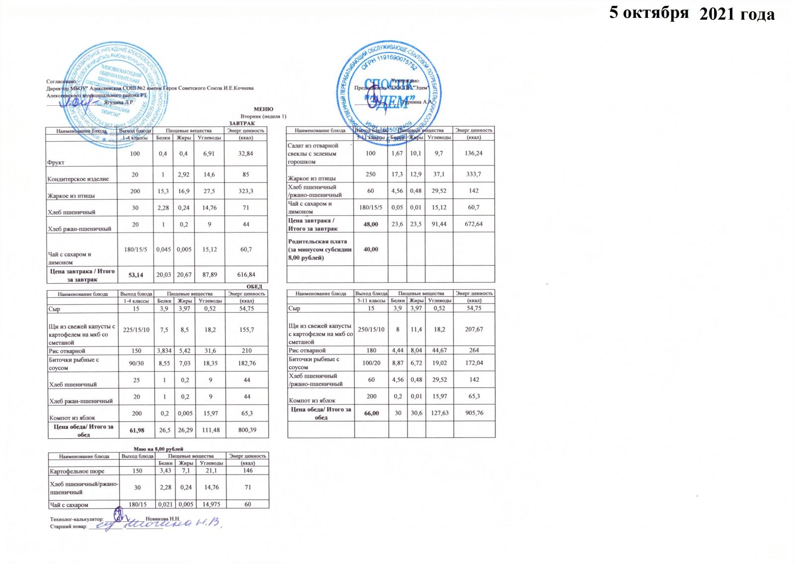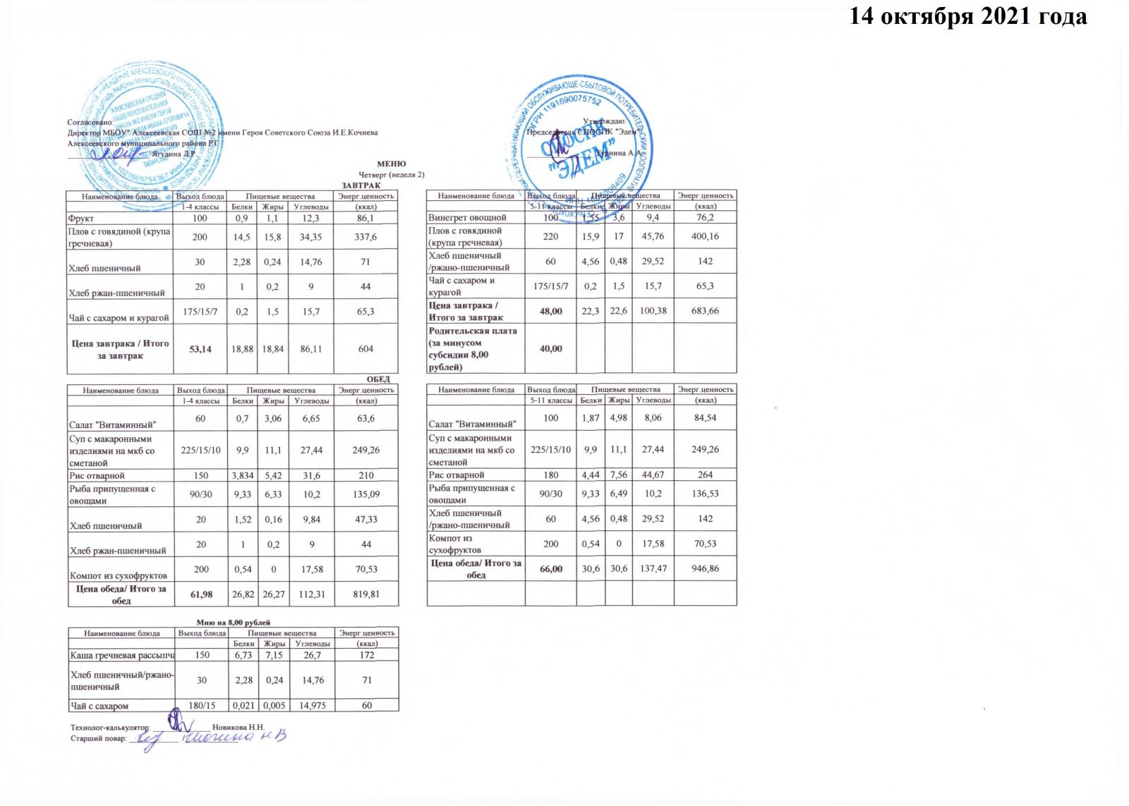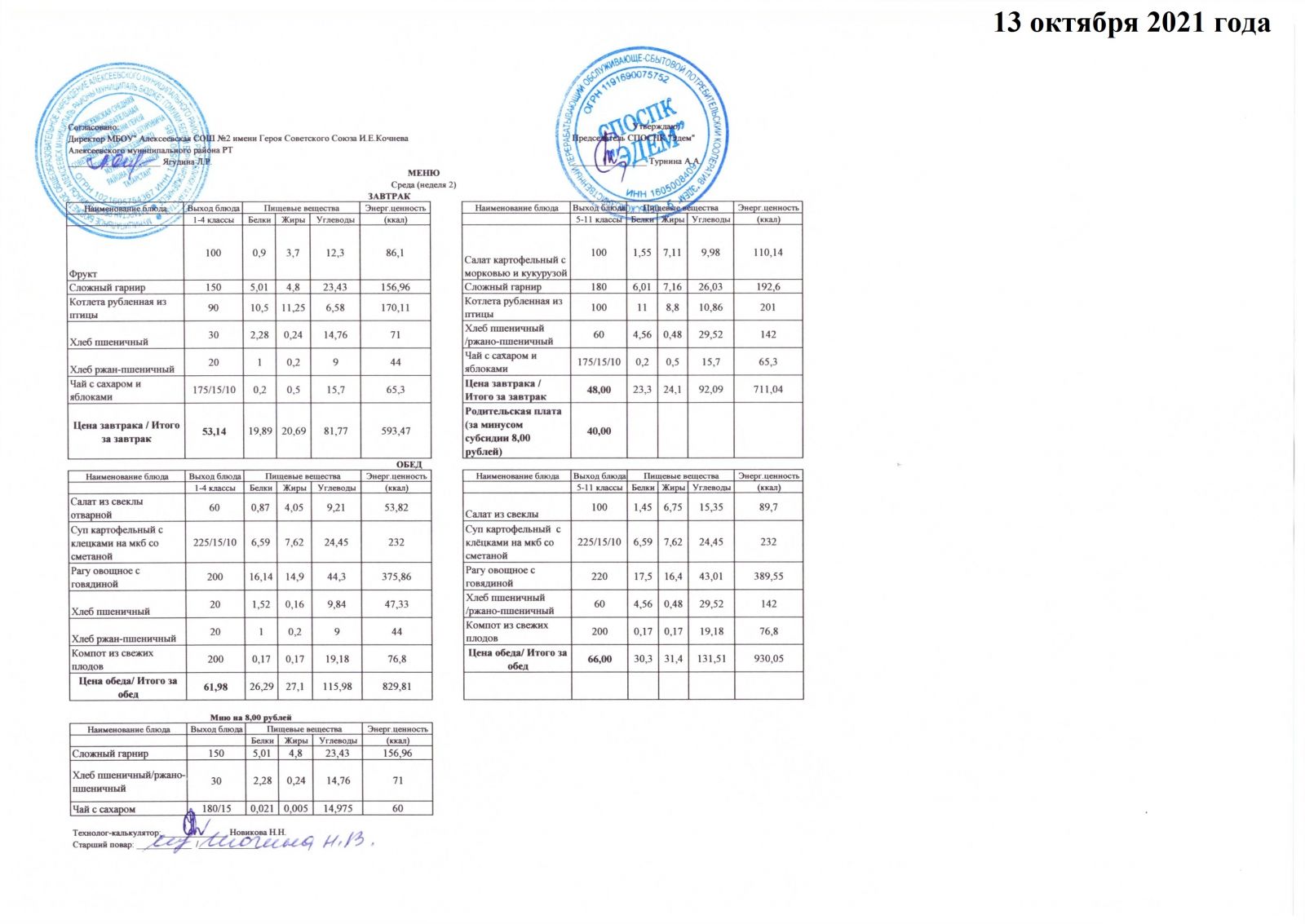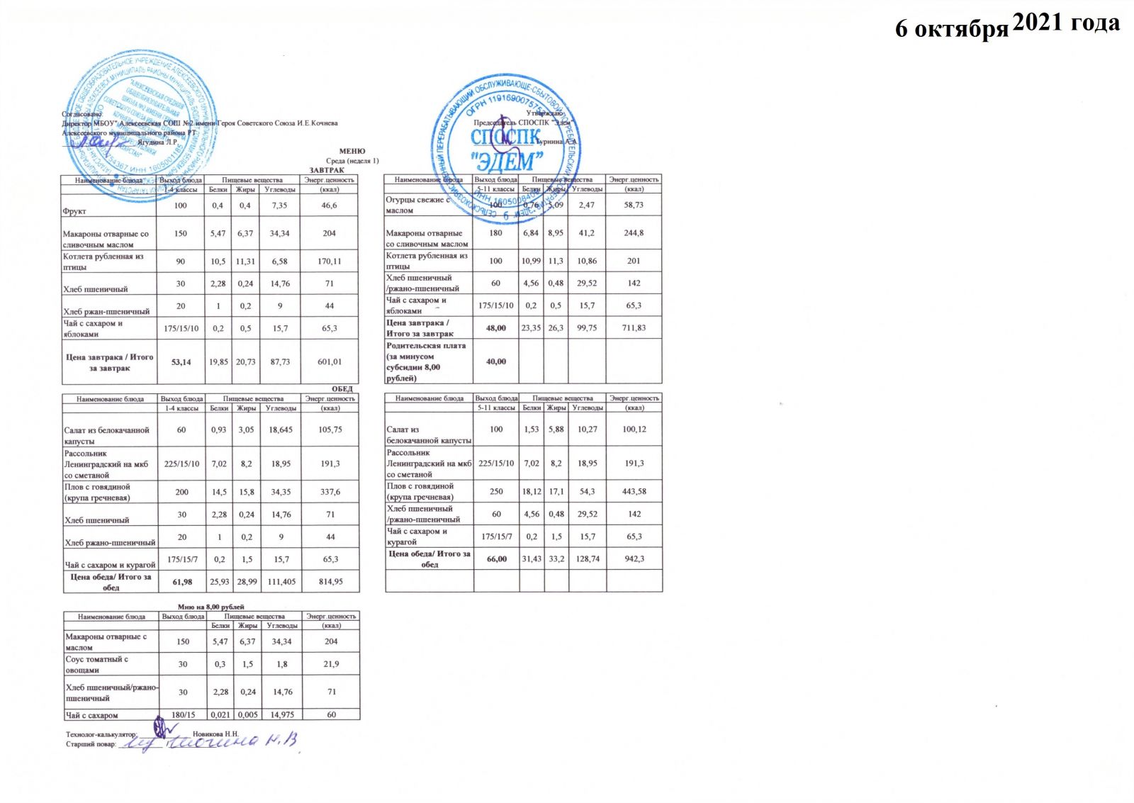 Меню 15.10.2021 Меню 16.10.2021 Меню 18.10.2021