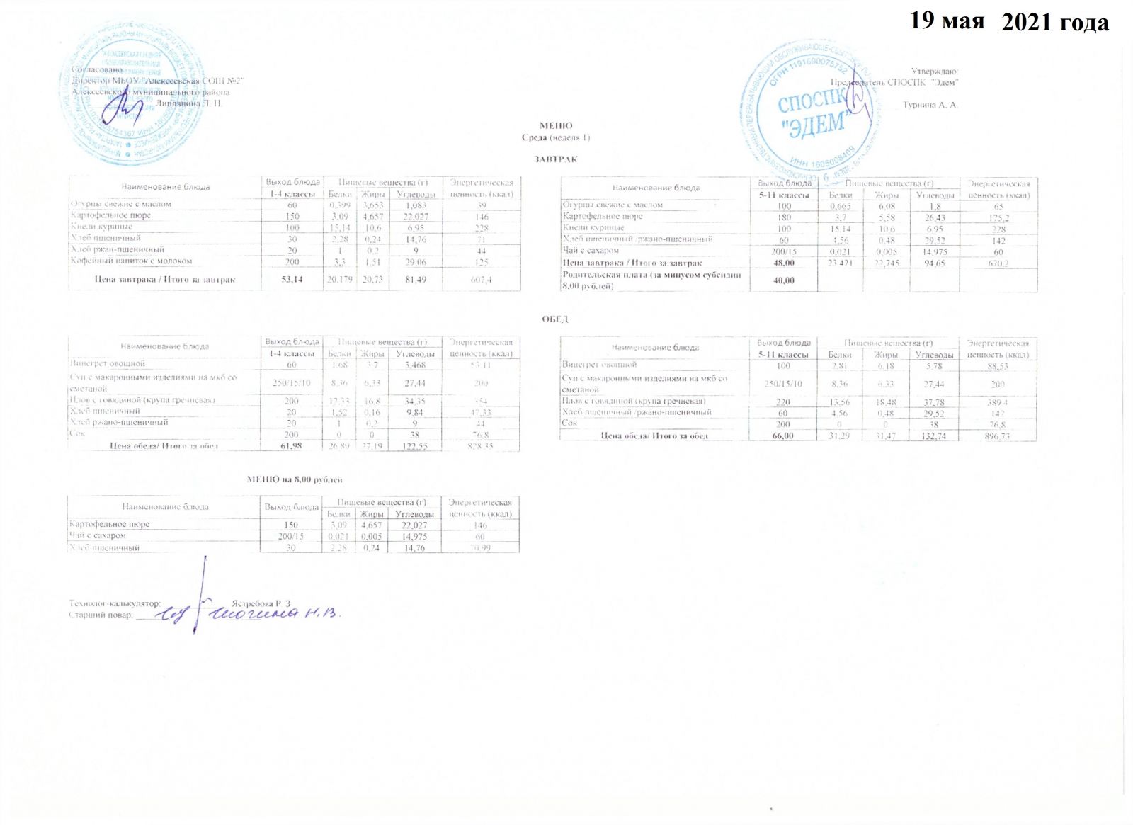 Меню 19.05.2021 Меню 20.05.2021 Меню 21.05.2021 Меню 22.05.2021 Меню 24.05.2021 Меню 25.05.2021