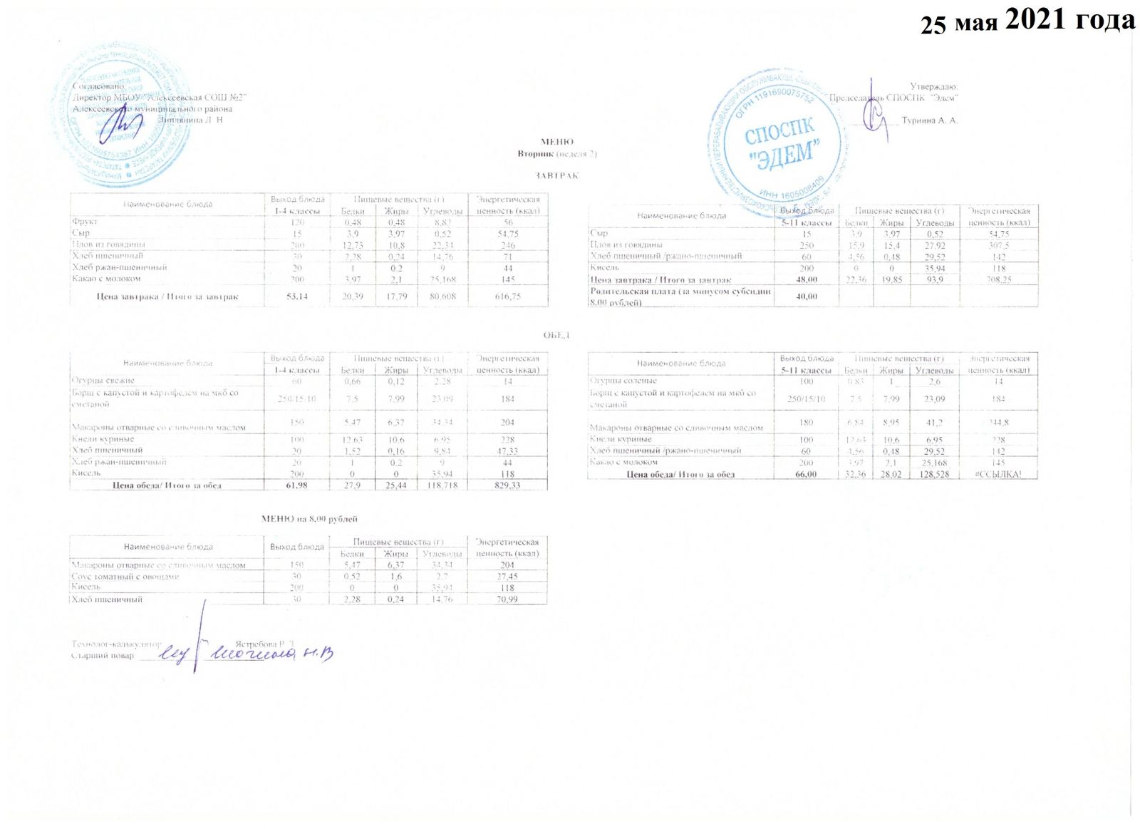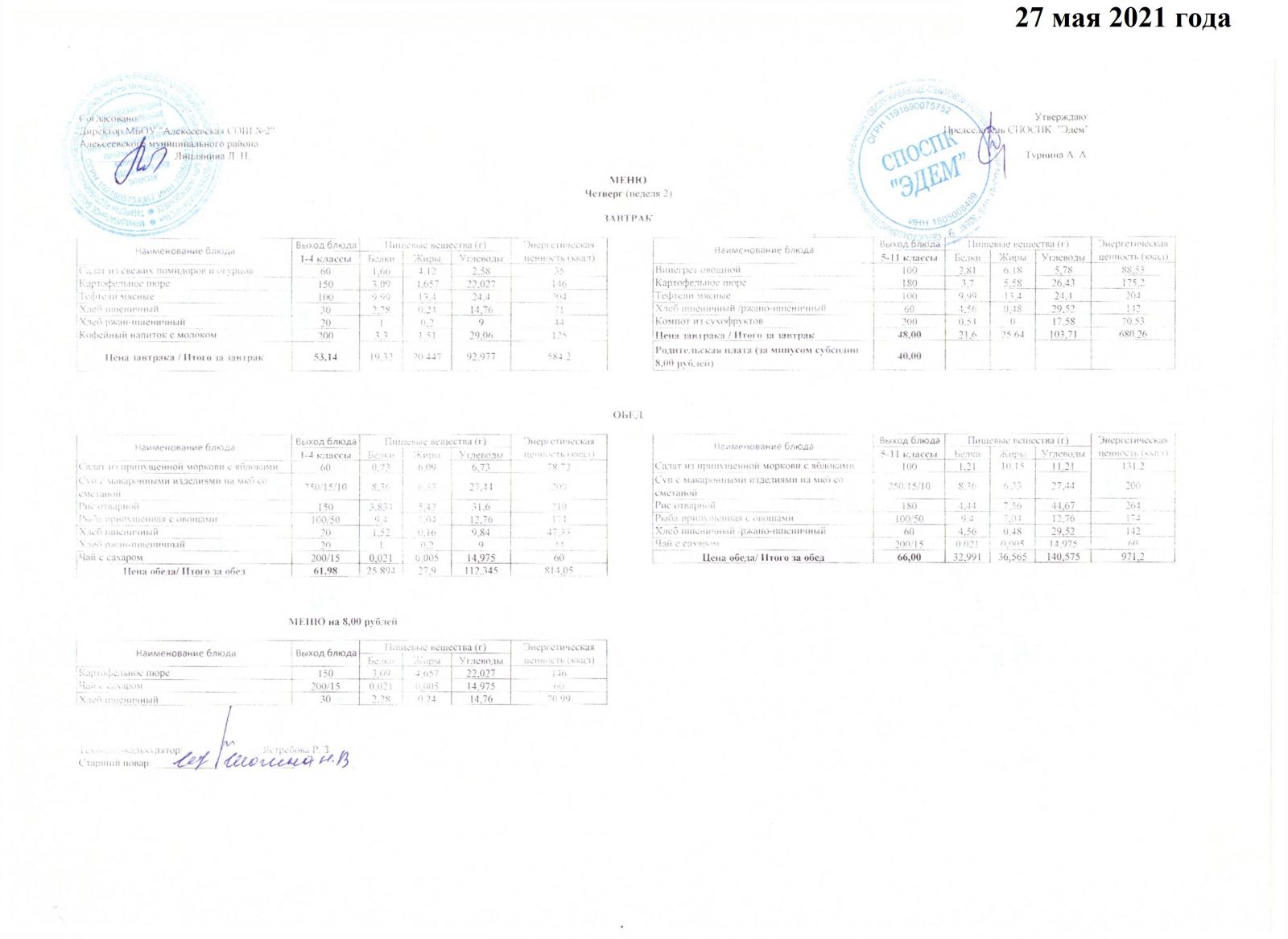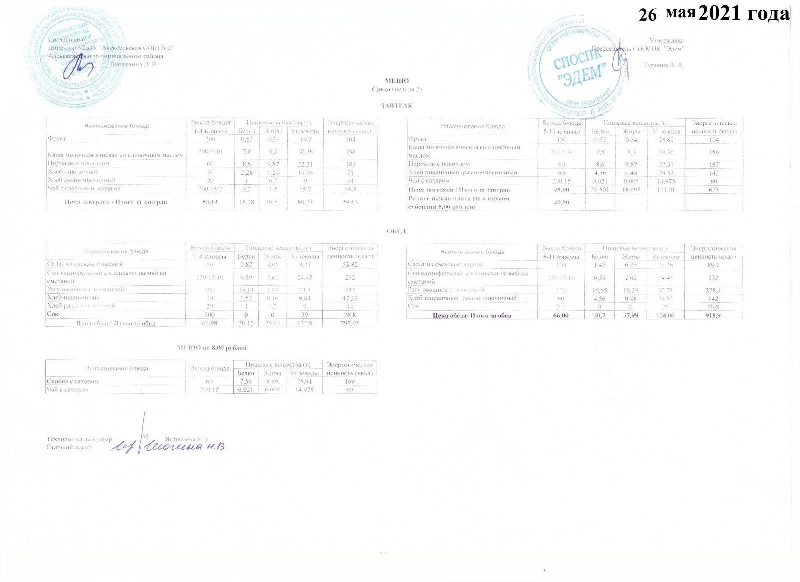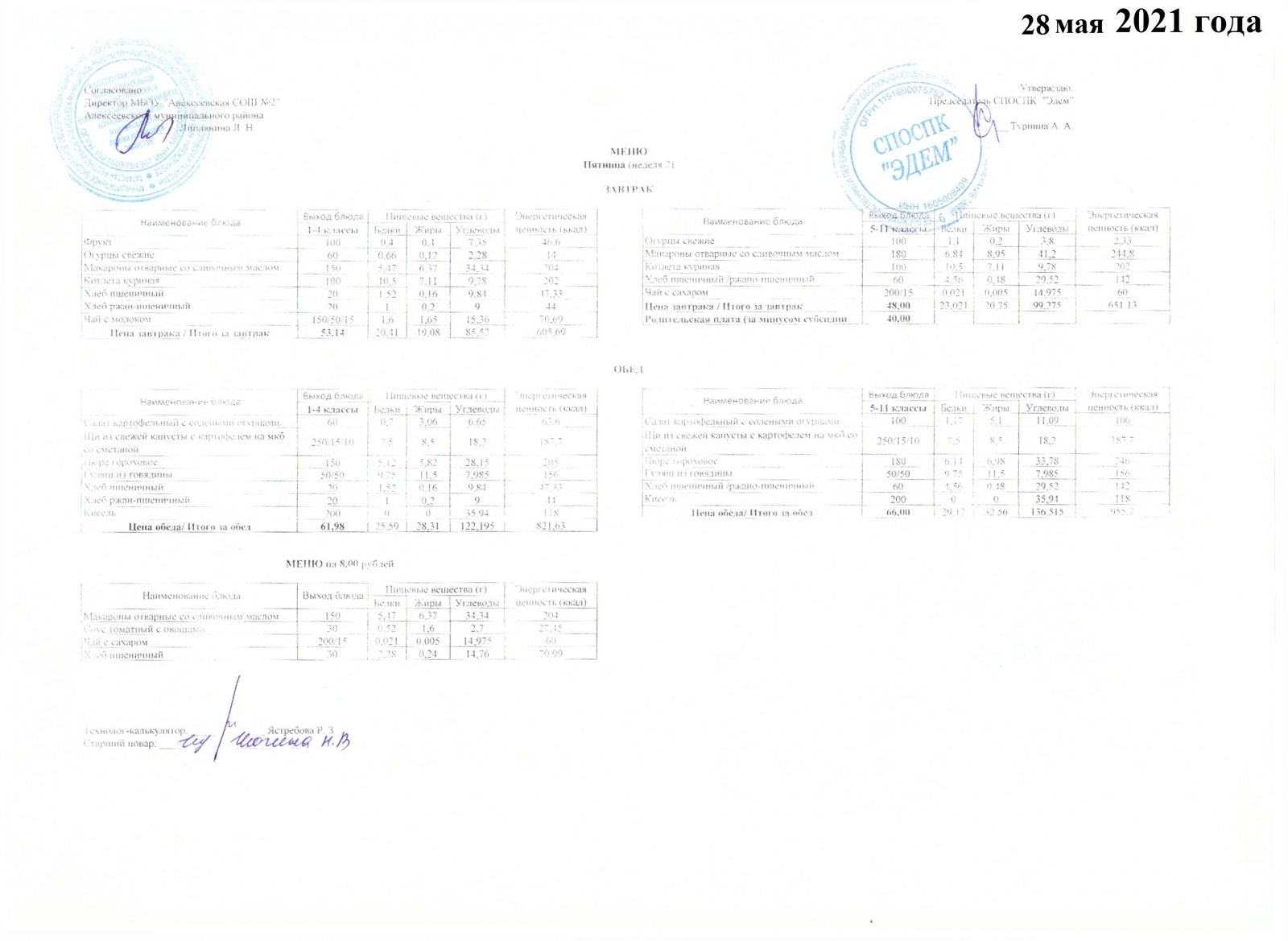 Меню 26.05.2021 Меню 27.05.2021 Меню 28.05.2021