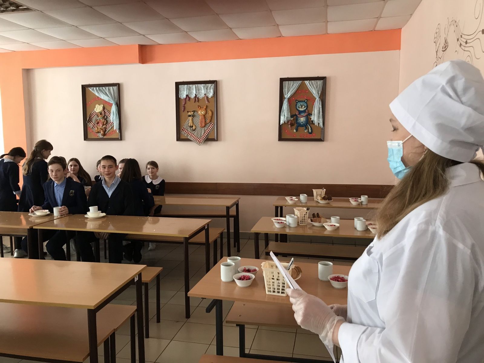 9.02.2021 г. член родительского комитета 7а класса Буслаева О.В. ознакомилась с организацией питания в школьной столовой. Она отметила, что на столы накрывает персонал, в столовой чистота и порядок, посуда чистая. Меню разнообразно. Детям нравится, как готовят повара.