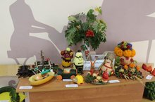 Активное участие приняли все классы. Ученики вместе с родителями и учителями изготовили интересные выставочные экспонаты и композиции из овощей и природных материалов. А для учеников 5-х классов был организован целый праздник с конкурсами, чтением стихов и показом старинных обрядов Осенин.