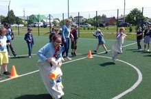 Праздник для детей проходил в парке "Дорожник". Дети приняли участие в различных соревнованиях: беге в мешках, стрельбе по мишени, посетили станции "Доброе слово", "Мыльные пузыри", рисовали рисунки и изготовили куклы своими руками.