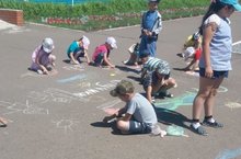 Во второй день лагерной смены каждый отряд подготовил визитку (название, девиз, газету).1 отряд - "Лучики", 2 отряд - "Веснушки", 3 отряд - "Спортики", 4 отряд - "Молния".Отряды приняли участие в конкурсе рисунка на асфальте "Детям солнце подарите". Лучшим в этом конкурсе стал 3 отряд. Поздравляем! -