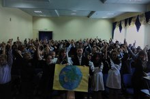 3 сентября в актовом зале школы прошла линейка, посвященная Дню солидарности в борьбе с терроризмом, в рамках которой активисты РДШ провели акцию «Территория мира»