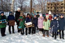 20 декабря ученики 1а и 1б и мальчики 9а класса в рамках ежегодной школьной акции " Покормите птиц зимой" развесили в школьном парке, сделанные вместе с родителями, кормушки.
