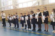 Сегодня на торжественой линейке чествовали учащихся, победителей и призеров муниципальных спортивных соревнований КЭС-баскет, республиканских творческих конкурсов и военно-учебных сборов.