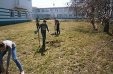 Учащиеся 5-8 классов приняли участие в субботнике по очистке территории школы.