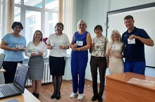 На совещании педагогического коллектива учителям Сагировой Ч.Т., Кудрявцевой В.Н., Вангаеву С.Г., Лукиной Н.Л., Баязитовой Э.Т., Хабибрахмановой Х.Х., Зайнуллиной А.Ш. вручили знаки отличия Всероссийского физкультурно-спортивного комплекса "Готов к труду и обороне".