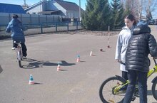 Отработка навыков вождения велосипедом учениками младших классов 07.04.2023