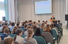 Представитель Казанского Федерального Университета, доцент кафедры педагогической психологии института психологии и образования М.В.Федоренко рассказала во время профориентационной встречи о вузе, факультетах, условиях и особенностях поступления в 2023 году, направлениях подготовки и профессиях, которые можно получить в КФУ.. В конце встречи ученики 11х классов получили ответы на волнующие их вопросы.