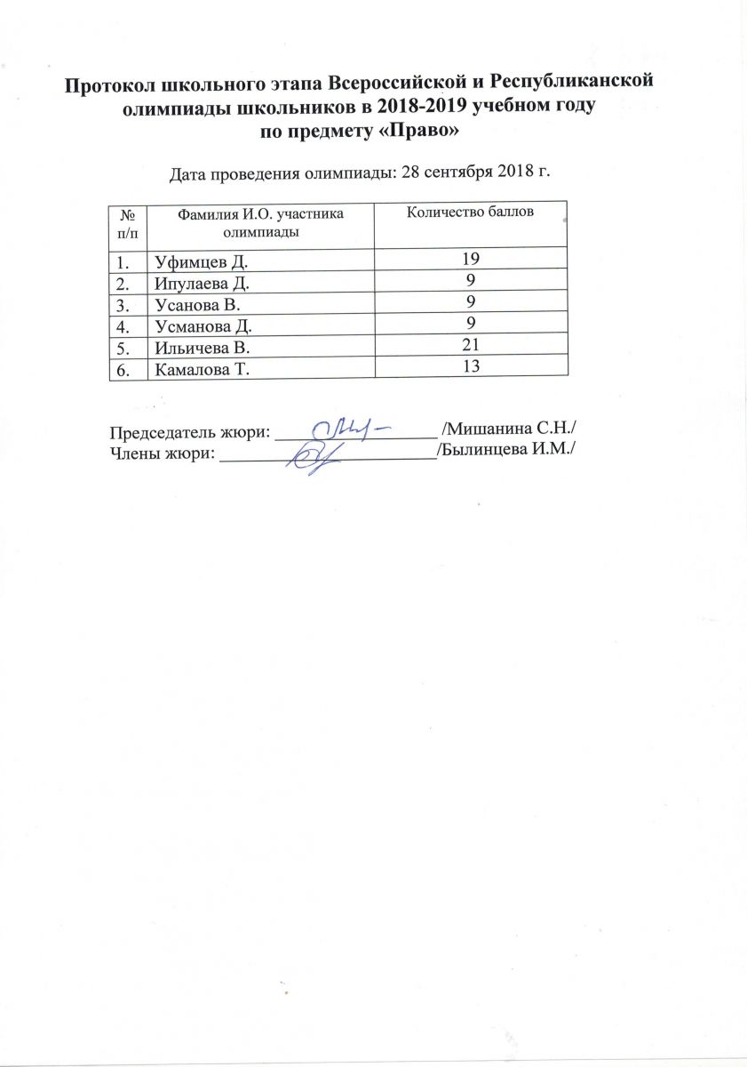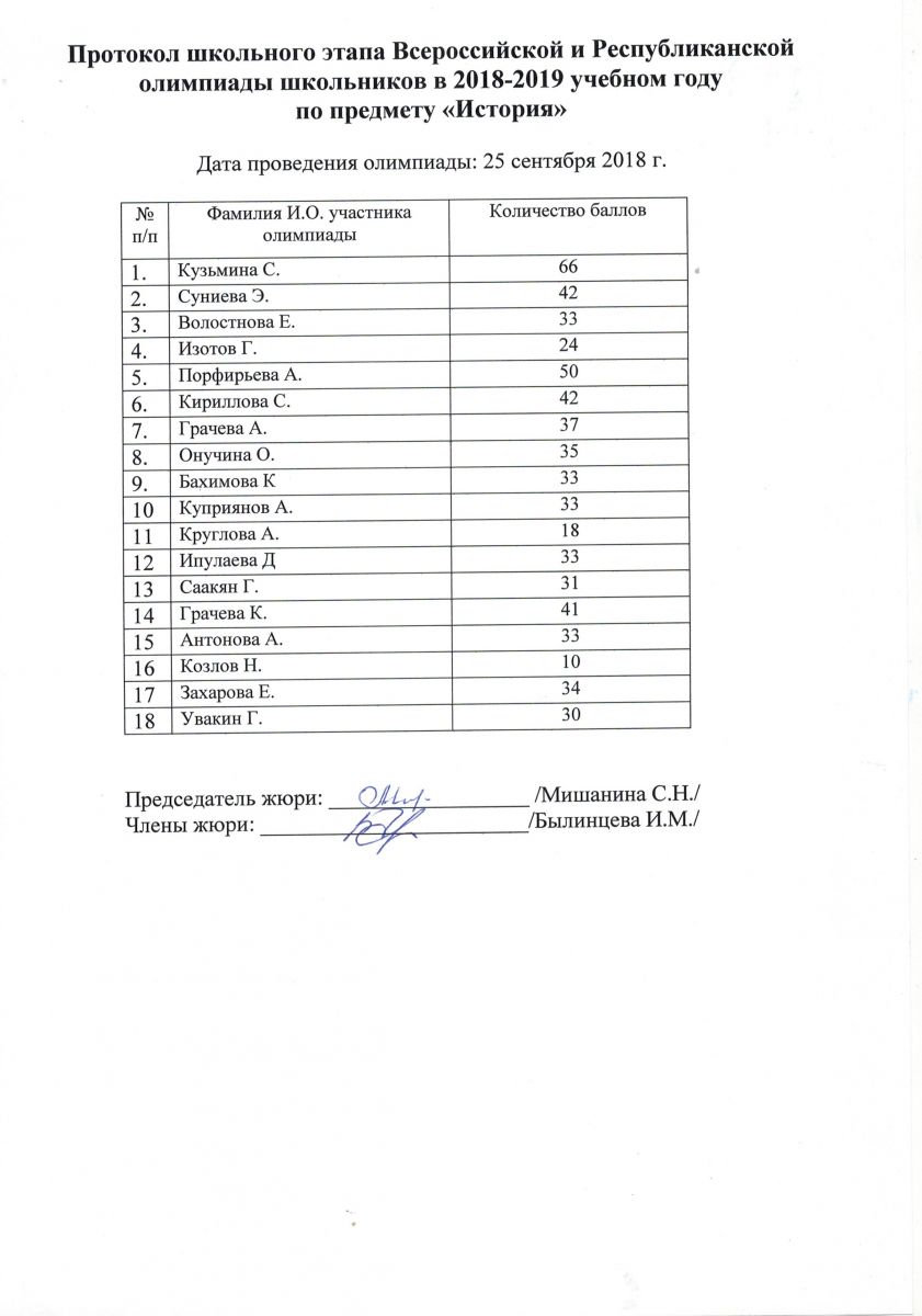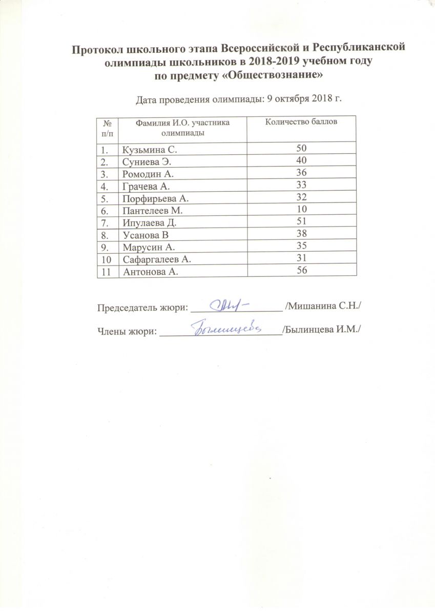Протокол олимпиады по обществознанию
