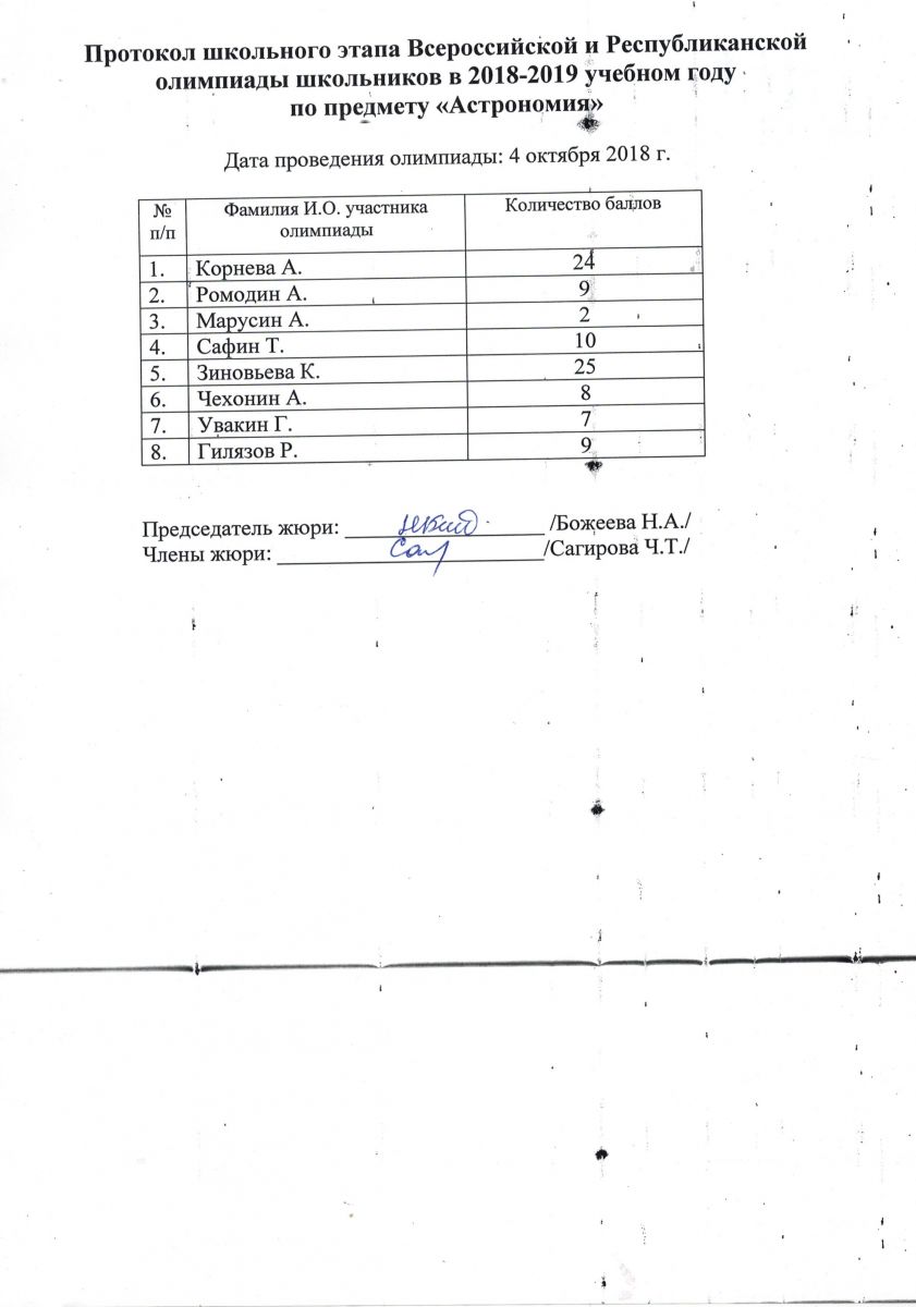 Протокол олимпиады по астрономии