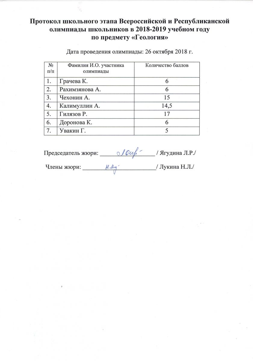 Протокол олимпиады по геологии