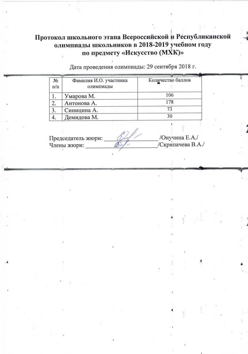 Протокол олимпиады по искусству (МХК)