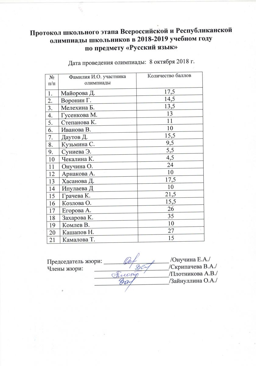 Протокол олимпиады по русскому языку