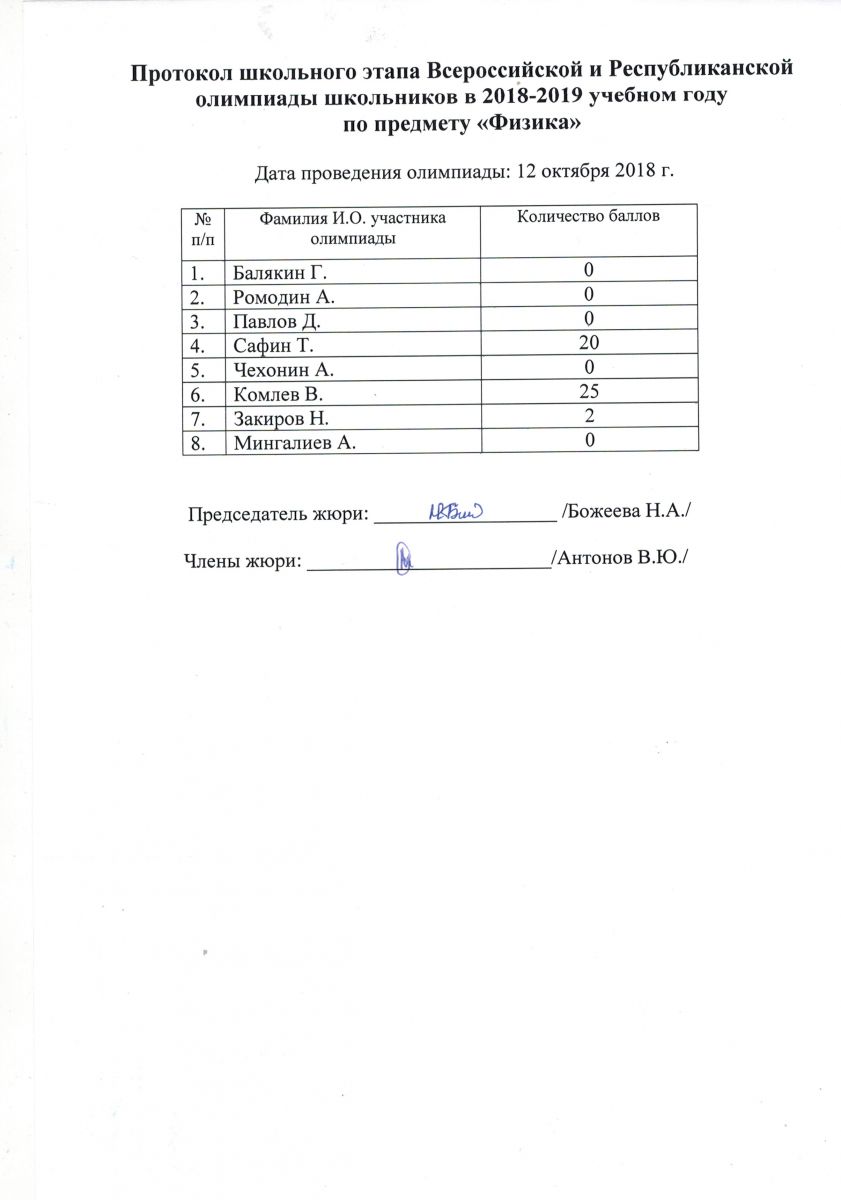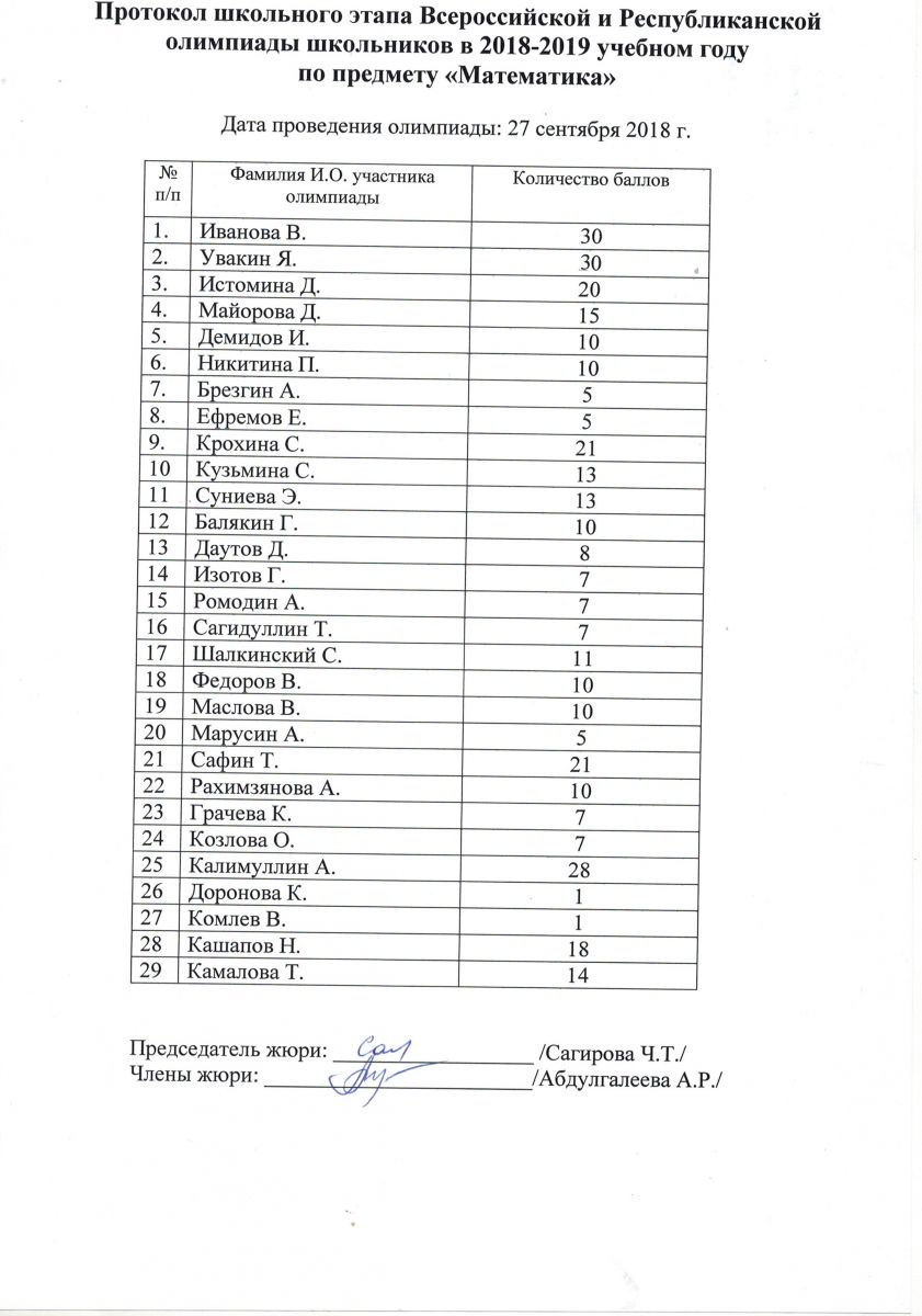 Протокол олимпиады по математике