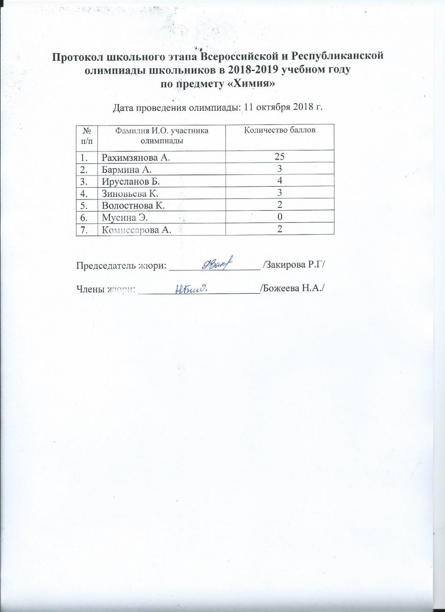Протокол олимпиады по истории Татарстана и татарского народа